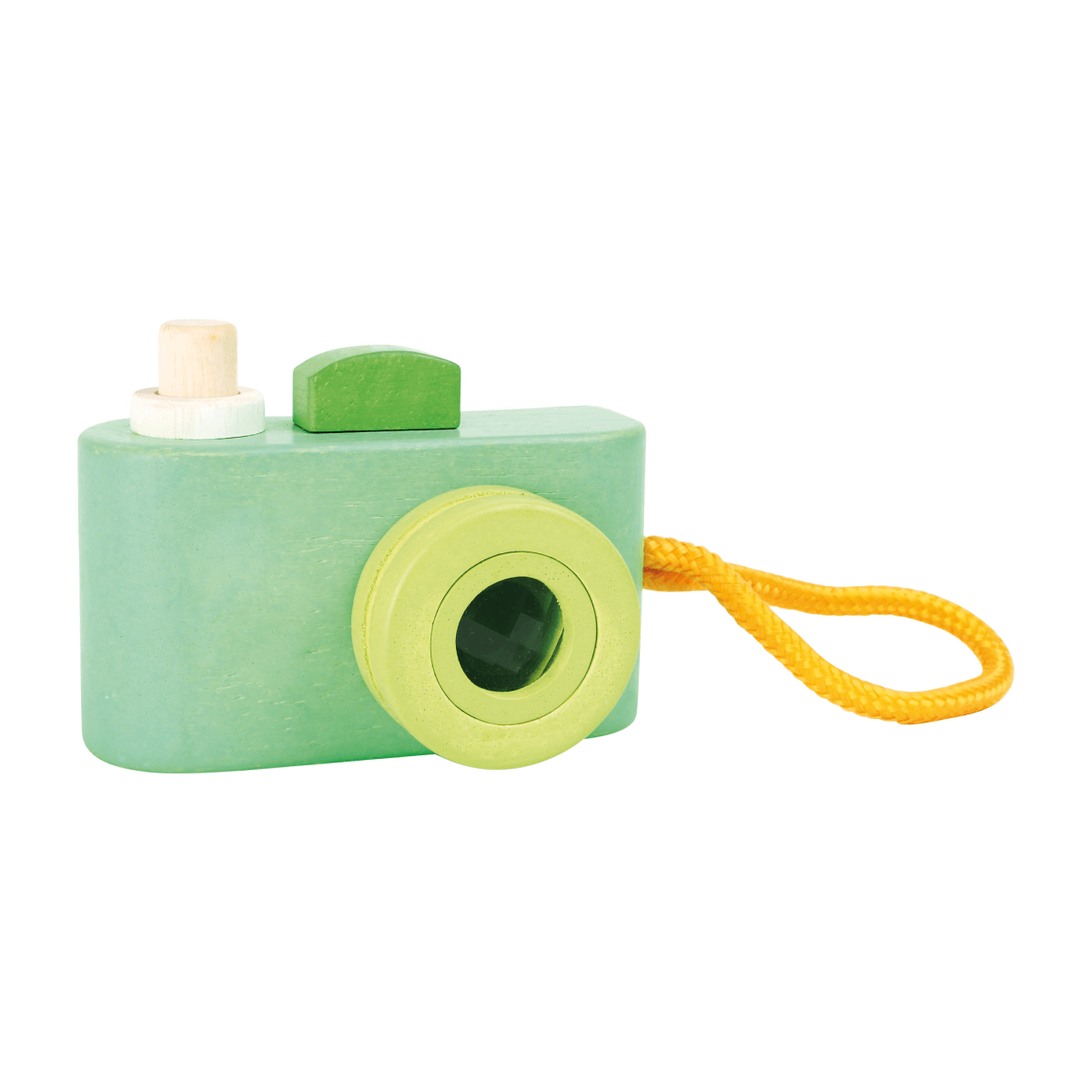 Quem não gosta de uma fotografia? Então tirada por umas mãos pequeninas nem se fala! Com esta câmara de madeira, as crianças pequenas podem tirar as suas próprias fotografias. Um "clic" divertido e um caleidoscópio integrado fazem desta câmara de brinquedo algo indispensável. As cores bonitas e a alça de transporte completam esta câmara. E, além de tudo isso, cabe muito bem nas mãos de crianças pequenas!