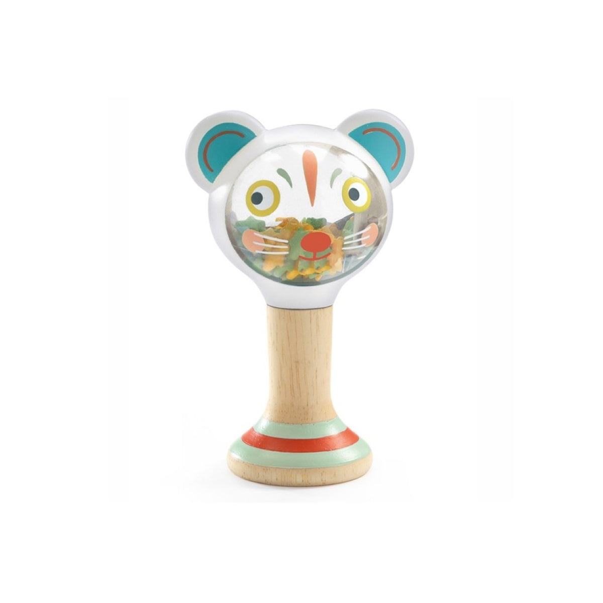 Um chocalho em forma de ursinho! O bebé agita o chocalho e observa e ouve as estrelas e pedacinhos de papel coloridos a fazerem barulhos fofos! O chocalho ajusta-se perfeitamente às mãos pequeninas do bebé.