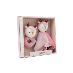 Conjunto Presente Veado – Doudou/Naninha e Chocalho para Bebé | Miniland