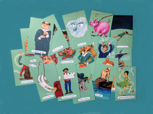 Contém 20 personagens, 20 estranhos objetos e outros 20 lugares tão diferentes e todos eles com fantasia, magia e disparate à mistura! Que comecem as infinitas Histórias Baralhadas e imaginadas!
