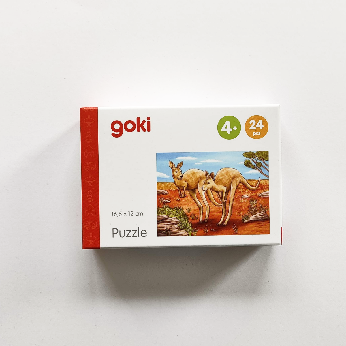 Este puzzle de 24 peças de madeira tem uma ilustração de um canguru.