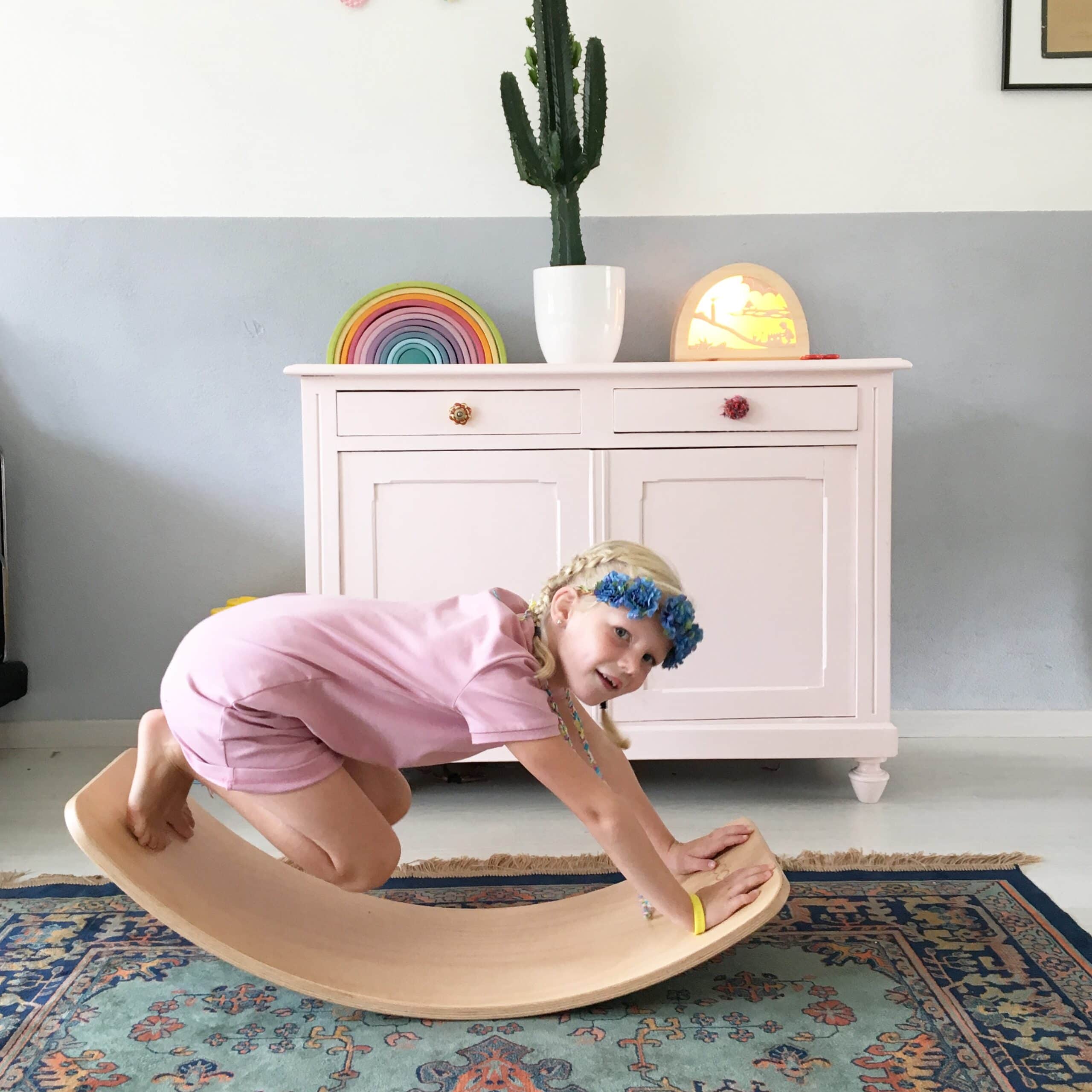Esta prancha de equilíbrio Wobbel é toda composta por madeira de faia proveniente de plantações europeias certificadas.
