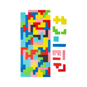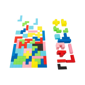 Este conjunto de 114 peças de madeira oferece infinitas possibilidades de jogo. Inspirado no clássico jogo de computador mundialmente conhecido, "Tetris", o objetivo é encaixar as diferentes formas geométricas. Com as várias peças do puzzle podem ser feitos mosaicos coloridos e individuais com inúmeras combinações. Este jogo de aprendizagem promove habilidades motoras finas, treina o reconhecimento de cores e formas, bem como a resolução de problemas. Divertido para jogar com toda a família!