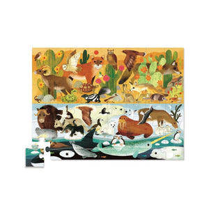 Esta nova linha de puzzles ensina aos mais novos os opostos e quais os animais que vivem em meios quentes e em meios frios. Ensina as crianças a serem curiosas e observadoras.
