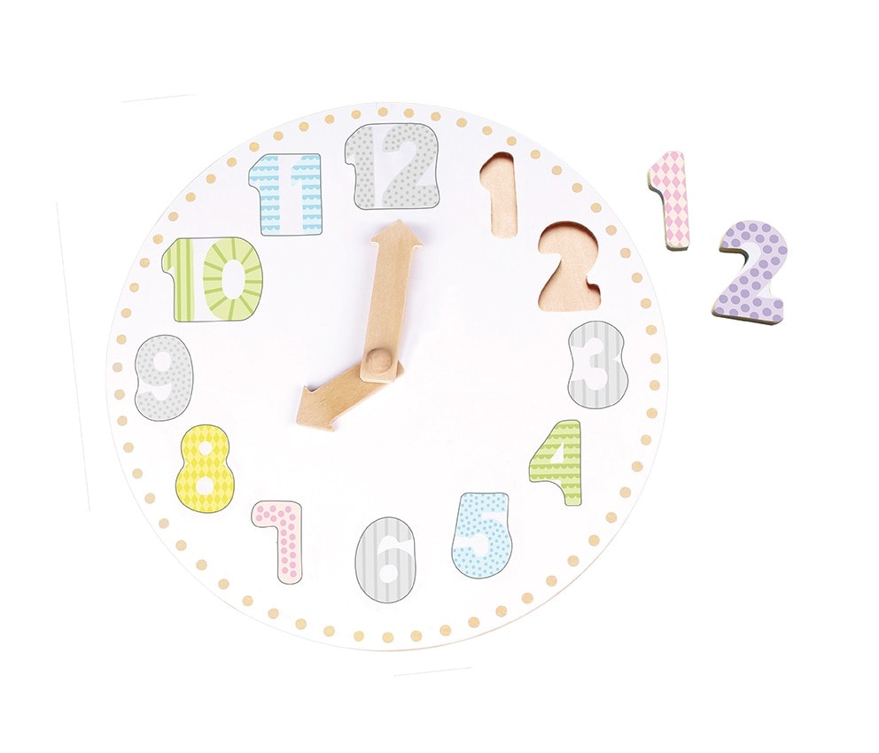 Um relógio puzzle onde as crianças aprendem as horas de uma maneira muito divertida, desenvolvendo igualmente a noção de número e a motricidade fina.