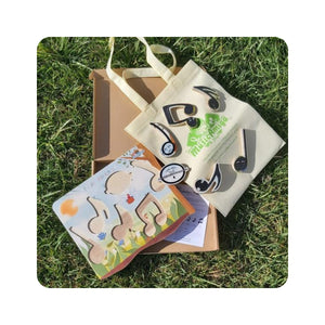 O jogo de encaixe pretende desenvolver a coordenação motora fina e a concentração das crianças, ao mesmo tempo que permite um primeiro contacto com a forma das figuras musicais.