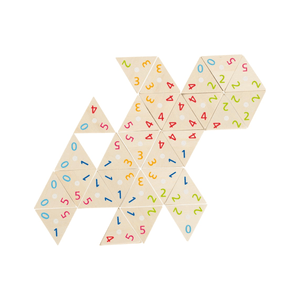 Num dominó cada peça tem dois números, neste tri-dominó, cada peça tem três números. Cada jogador tem que conseguir juntar o máximo de números possível.